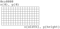 It is possible to treak the display adapter in creating and discovering new, "undocumented" video modes. More on this later. EGAIntroduced in 1984 by IBM, The Enhanced Graphics Adapter (EGA) produced a display of 16 colors at a resolution up to 640x350 pixels. Remember that the VGA adapters are backward compatible, simular to the 80x86 microprocessor family. Because of this, and to insure backward compatibility, the BIOS starts up in Mode 7 (Originally from the MDA), which supports 80 columns, by 25 lines. This is important to us, because this is the mode we are in! Video MemoryMemory Mapped I/O (MMIO)If you know what Memory Mapped I/O is, you can skip this part. The processor can work with reading from RAM and ROM devices. In applications programming, this is something you never see. This is made possible with MMIO devices. Memory Mapped I/O allows a hardware device to map its own RAM or ROM into your processors physical address space. This allows the processor to be able to access hardware RAM or ROM in different ways by just using a pointer to that location in the address space. This is made possible because MMIO devices uses the same physical address and data bus that the processor and system memory uses. It is important to remember, however, that Memory Mapped I/O is a mapping to the physical address space of the processor, not actual computer memory. In some architectures, it is possible to bank switch, or provide a method to switch between either using the MMIO device mapping or the system memory "hidden" behind it, while on others it is not. What this means for us is that we cannot access the actual system memory addresses that are "hidden" by the MMIO device. For example, CMOS RAM memory is mapped into the physical address space at address 0x400. This is different then main system memory; accessing 0x400 with a pointer will access the CMOS RAM memory always do to MMIO. It is not possible to access this location in system memory in the i86 architecture. MMIO devices allows us to have more control over the hardware - it allows high resolution video displays with limited system memory, it allows us to obtain information from a device that is kept current by a battery (CMOS RAM) that would have altherwise been lost if in system memory. Another example of an MMIO device is the system BIOS ROM itself. MMIO is what allows the processor to execute the BIOS from ROM as it is mapped to the systems physical address space. Cool, huh? You might be wondering what this has to do with graphics. Video memory is RAM that is mapped into the physical address space. Video memory is managed by the video display device which uses MMIO to do this. How MMIO memory is managed and worked with is up to the device; it is not always nice and linear. Different graphics modes require different ways that you have to work with this memory, so understanding that it is an MMIO device is important. An interesting fact about MMIO address space regions is that, with paging they can be mapped to any virtual address and accessed from that address. This means you can map, for example, video memory, to any virtual address you want and access video memory using that virtual address. This, of course, has to do with the way pages are mapped to frames in the physical address space. Also remember that MMIO memory is not in system memory. Computer system memory does not need to be greater then the size of the MMIO address that you are trying to access. For example, if your system only has 2GB of system memory, you can still access the MMIO device if it has RAM mapped to the physical address space at 0xFC000000 without error. See this text right here? Thats right, me; I am in your computer... residing in Video RAM (VRAM). VRAM is Video Memory, also known as the video framebuffer. It containes all of the pixels that you see before you, and more. Standard VGAVideo memory is stored inside of the video device; usually a video card or onboard video adapter. Standard VGA cards have 256 KB of VRAM. It is not uncommon however to see SVGA+ cards to have much more video memory however. After all, they have to be able to store all of the pixels in the high resolution video modes somehow, right? Remember the memory map from chapter 7? We can see the Standard VGA memory resides in 0x000A0000 - 0x000BFFFF. 0xBFFFF - 0xA0000 = 0xA0000, which is 655360 bytes, or 640 KB. It is important to remember that video memory is mapped in the PCs address space at this location. What this means is by writing here, you are writing to video memory that is located in the video adapter. This is a form of Memory Mapped I/O. When accessing video memory, you typically access it using a "window" into the real video RAM. This is typically: